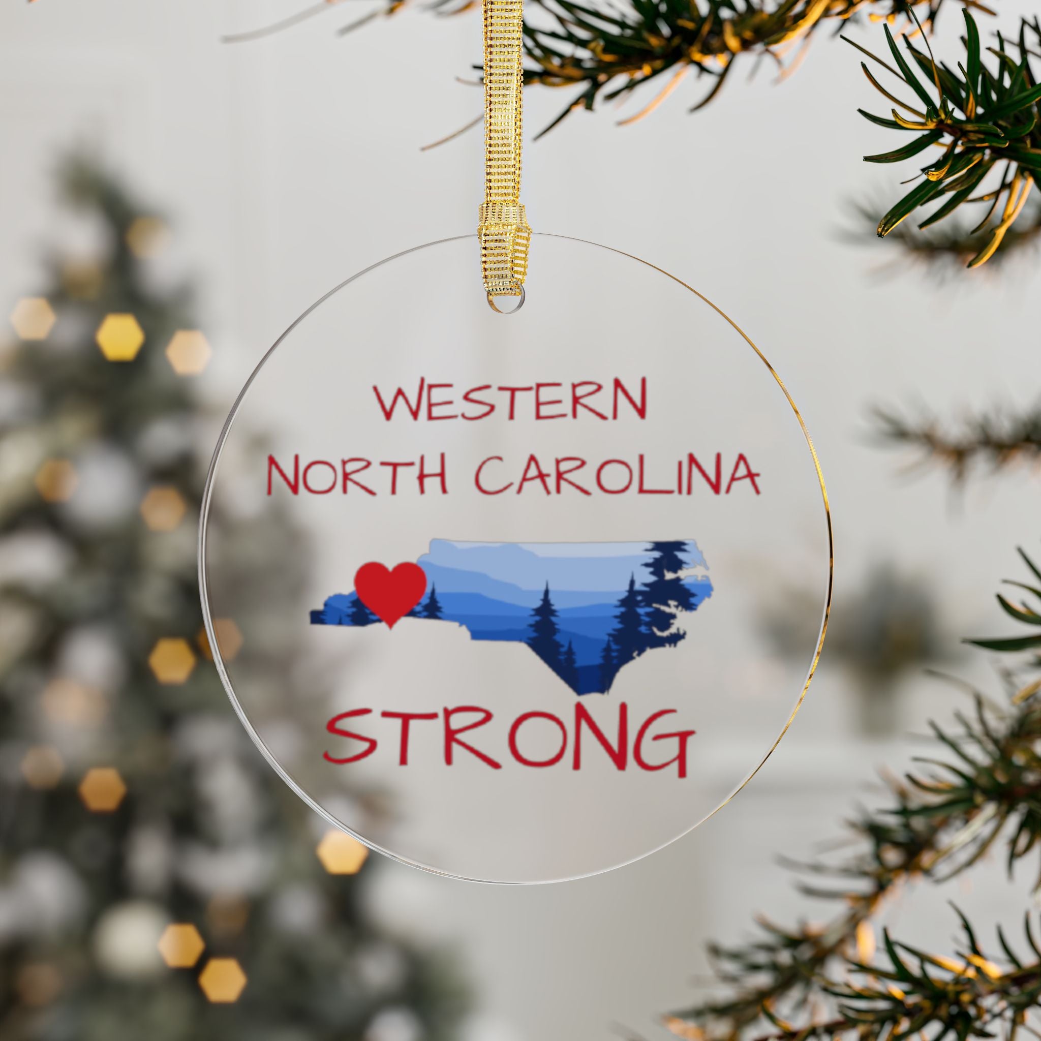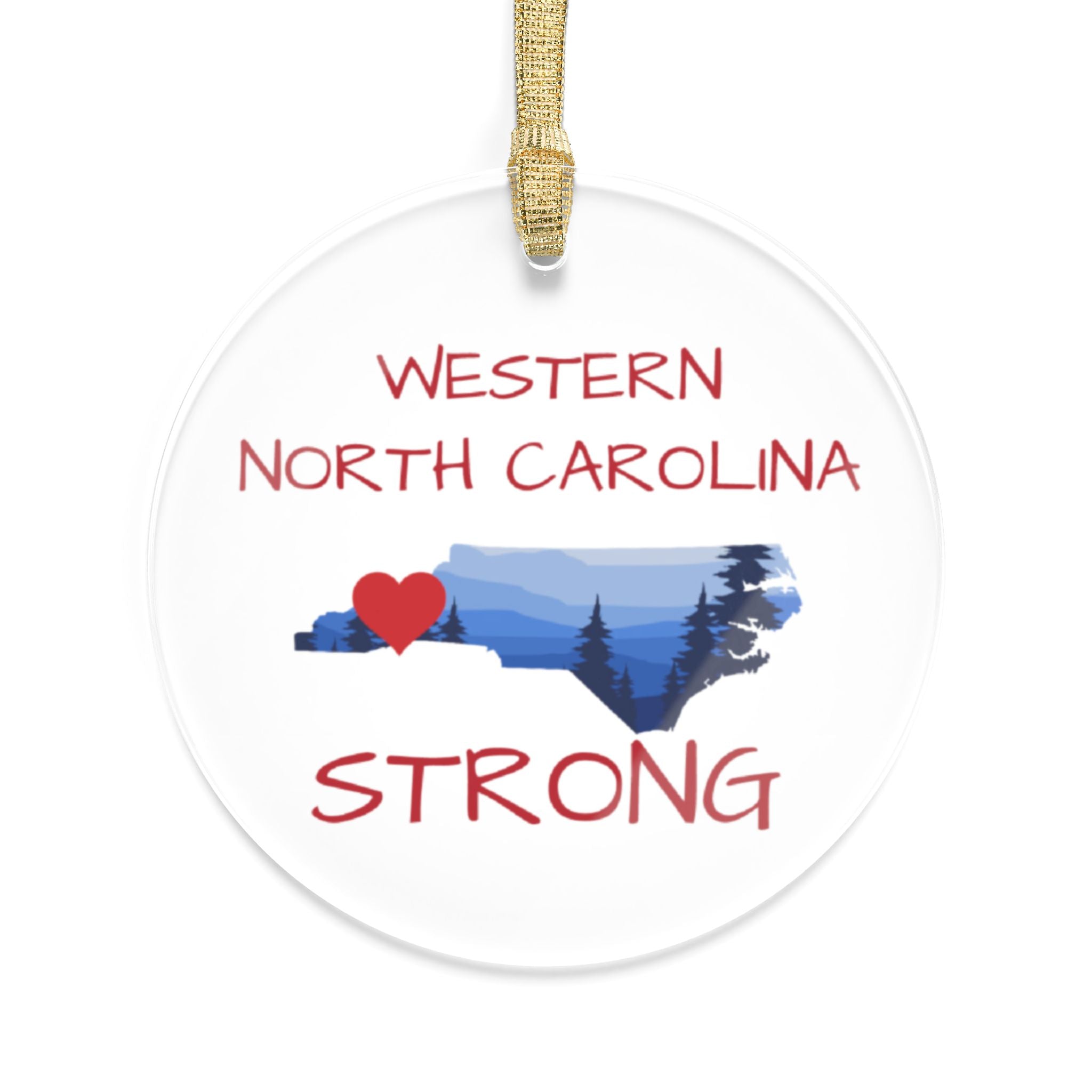 Support WNC! These special ornaments will sparkle with the reminder of resilience and hope! Share these with family and friends as we support or WNC community. All ornaments feature a beautiful, transparent construction and a string for effortless placement.